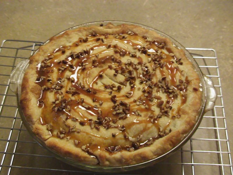 Finally, the other day I was in a pie making mood and ended up making an apple pie drizzled with caramel sauce and sprinkled with pecans. I was so happy that it turned out, so I just had to take a picture. Yummy!