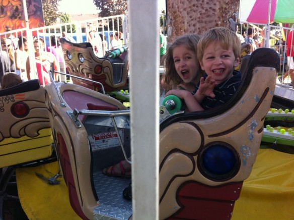 Last week, Bryce’s company treated everyone to a day at Lagoon, our local amusement park. We had such a fantastic time! Easton got to spend the day with Grandma Brenda–we figured he would be much happier crawling around her house than riding in his stroller all day. This made it so that Bryce and I could go on lots of rides with the kids. We really had a blast! I was blown away by how Amelie and Calder were totally fearless. If they were tall enough to go on a ride, they rode it!