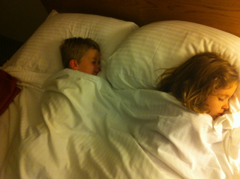 Snug as bugs. This was the scene each night of our trip within minutes (or seconds!) of getting back to our hotel room. Amelie kept calling the hotel the Clubhouse. Either she was thinking of Mickey Mouse Clubhouse or our community clubhouse…