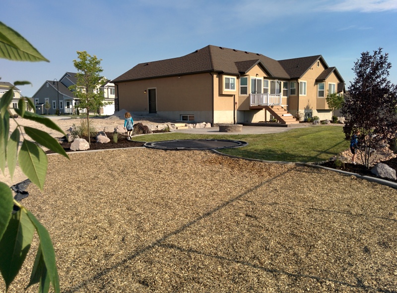 IMG_20140724_085152 Published July 27, 2014 at 800 × 592 in Landscaping: Before & After After. The woodchip area is where we will put some more play equipment for the kids.