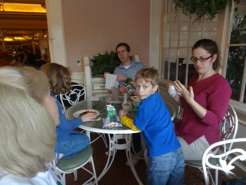DSC06738 Published December 16, 2014 at 800 × 600 in Disneyland 2014: Day 2 P.S. Eating lunch. It was super delicious which is what makes this picture even more classic. What on earth was on my hand?