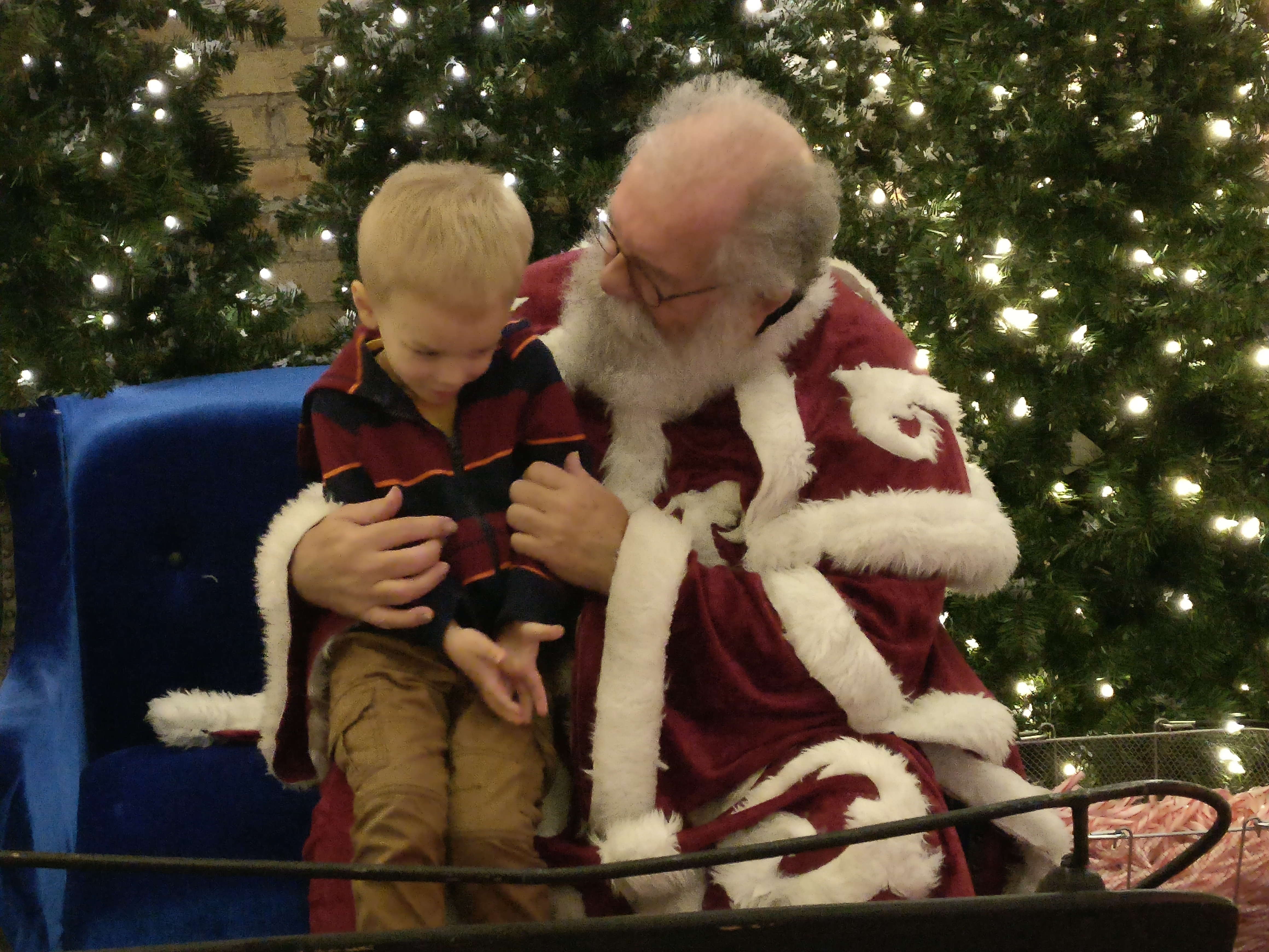 And Sweet Liam, who isn’t quite sure what’s going on, but who is very fond of the candy cane he gets from the man.