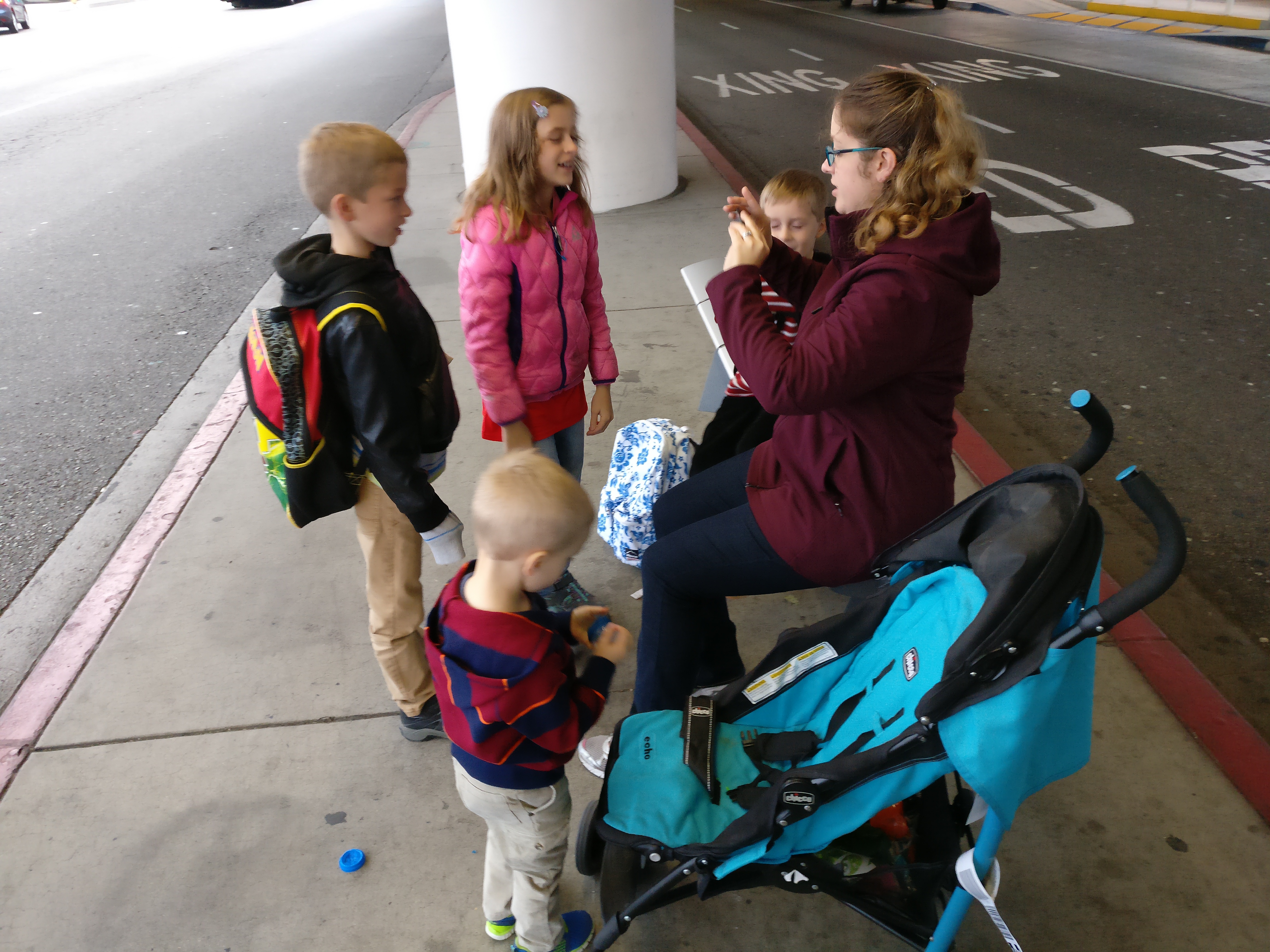 img_20161206_163211 Published December 13, 2016 at 4640 × 3480 in Disney 2016! Not the best photo, but I had to post it to commemorate the 2 HOURS we sat on this median at the airport waiting for our shuttle. It’s a long story involving a flat tire and lots of rounds of the game Heads Up with the kids.