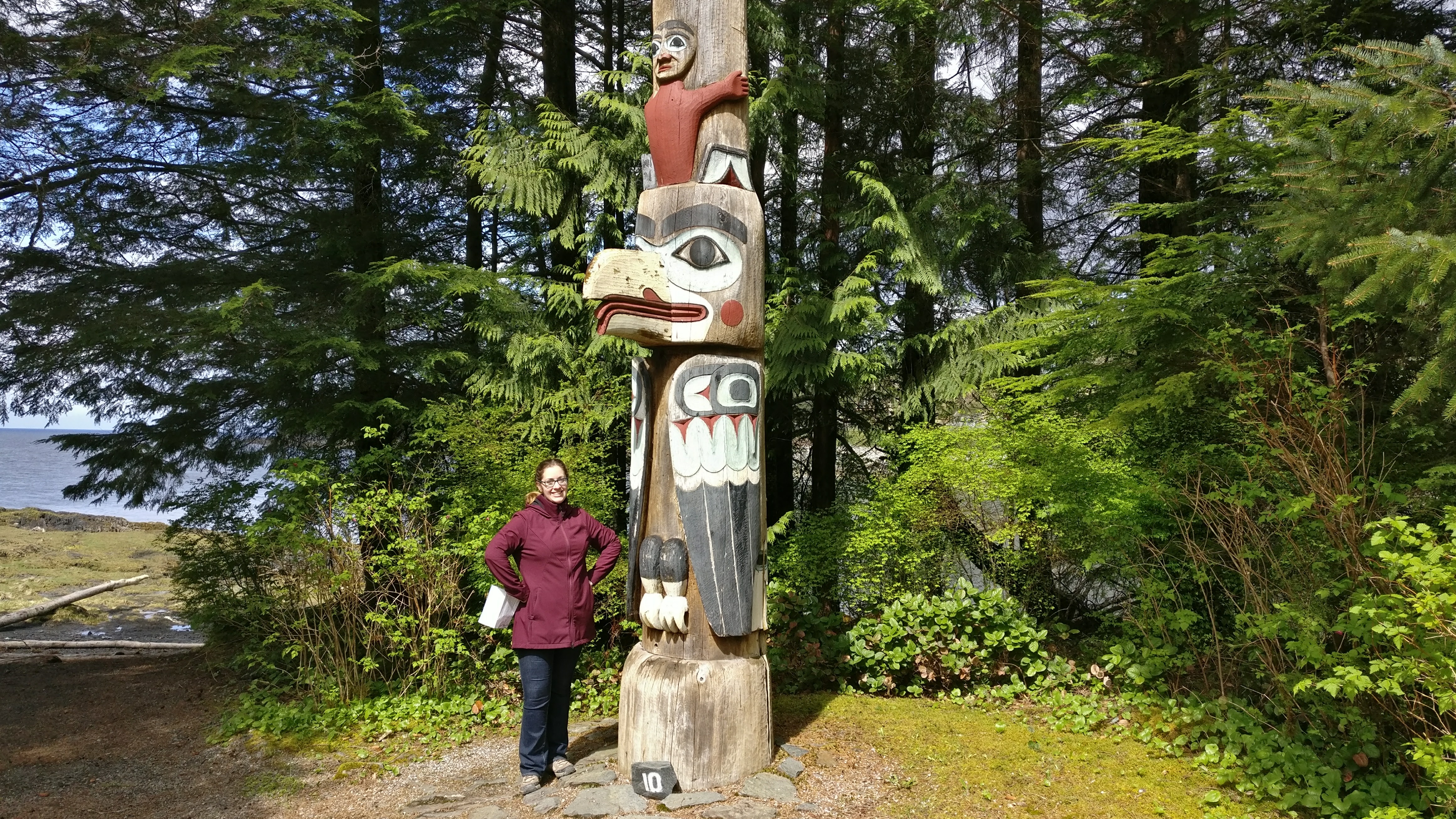 IMG_20170503_120742 Published May 30, 2017 at 4640 × 2610 in Alaskan Cruise 2017 At Totem Bight State Historical Park. We learned about totem poles and local native culture. Raven is a major figure in local folklore and tradition–which was awesome! This pole has a big Raven carved right at the base.